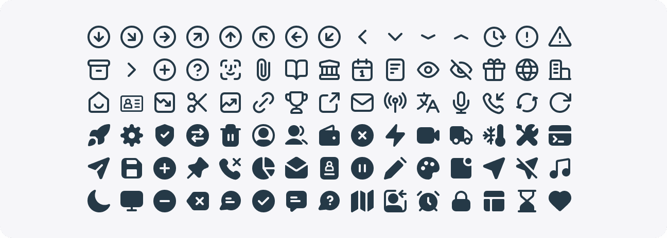 These icons, available in both line and solid variants, are used to communicate various UI components.